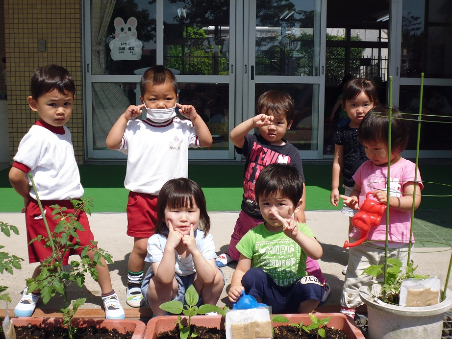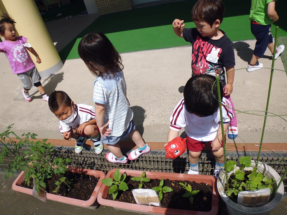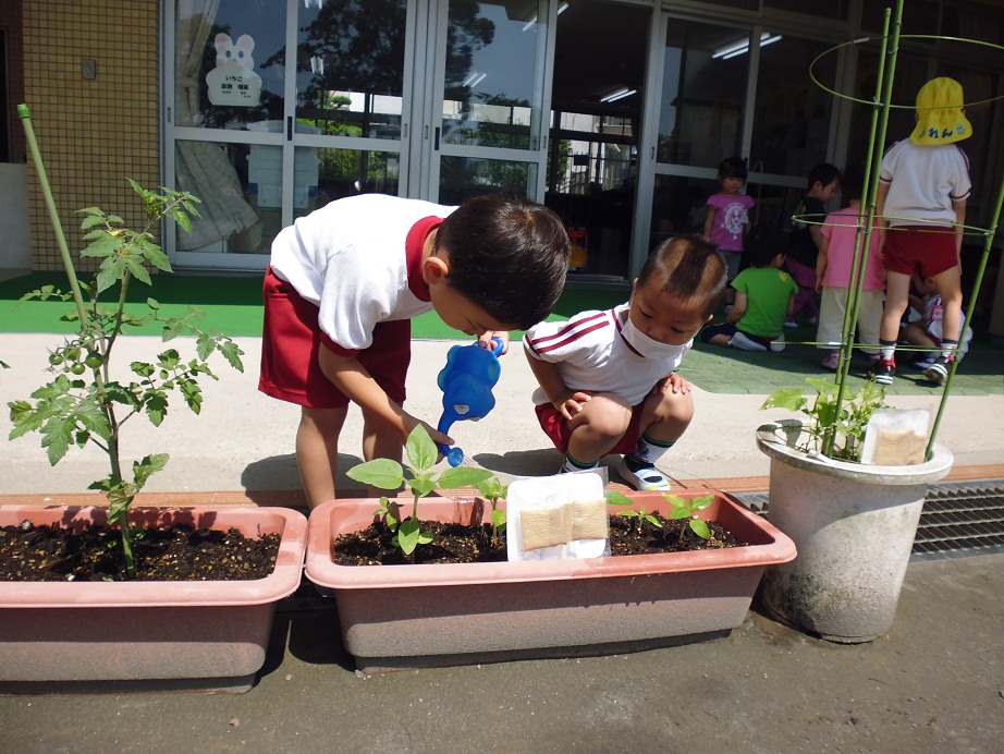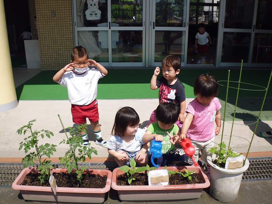 文を唱えていた子どもたち。毎日、じょうろに水を入れて、嬉しそうに水をか
