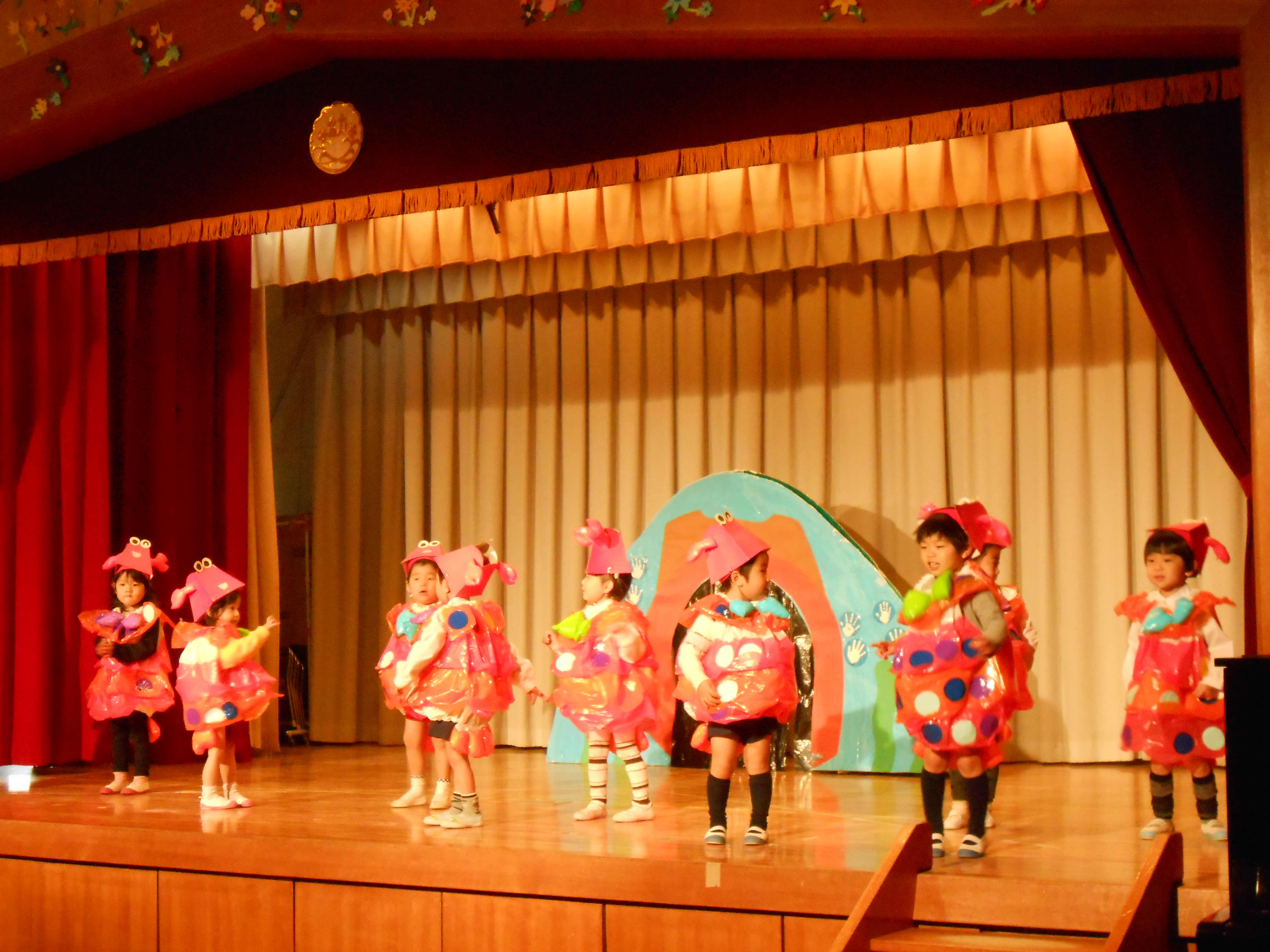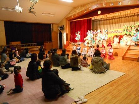 に出てもらいました。特に年少少・年少組さんの出し物は,同じ年齢の子ど