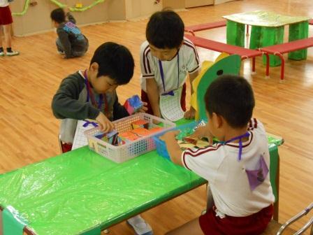 また,絵合わせコーナーでは,いろいろな恐竜の絵を組合せたパズル