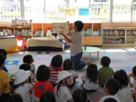 今日は、二学期最初の文庫がありました。おはなしママクラブのお母様方が文庫で読み聞かせをしてくださいました。お母様方の読み聞かせに,子どもたちは興味津々。本を見ながらいつの間にか立って見ているお友達もいました。 次回の文庫のは,9月18日(火)ですので,ぜひ,お子さんと遊びに来てください。