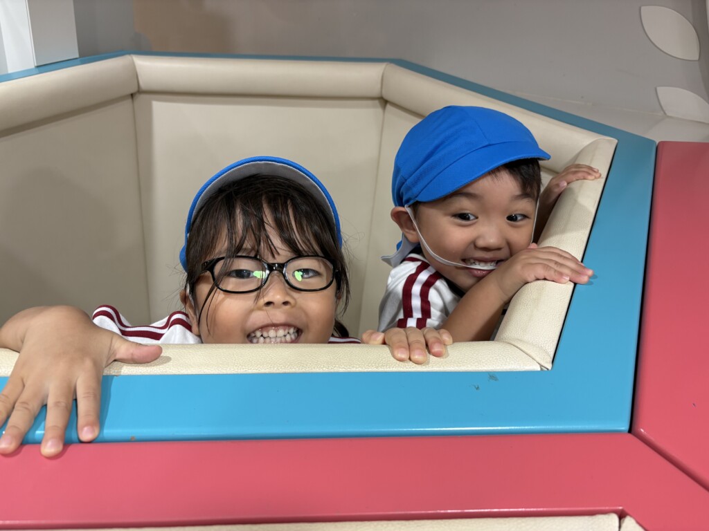 待ちに待った園外保育!大雨の中,不安もありましたが雨も上がってウキウキの子どもたちでした。メルヘン館に着くと,「早く遊びたい~!」「おもちゃがいっぱいある!」と嬉しそうな様子。普段とは違う環境の中で,体を伸び伸び動かして楽しそうな子どもたちでした。次の園外保育も楽しみに毎日を過ごしたいと思います。
