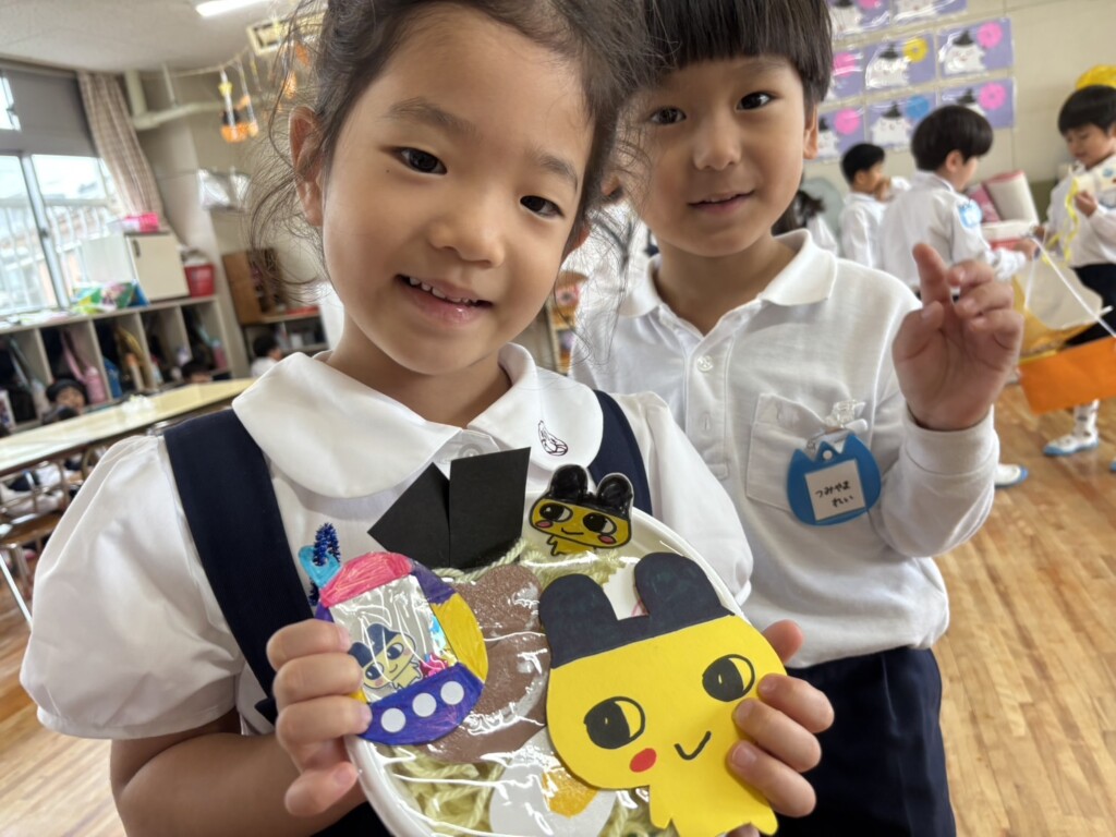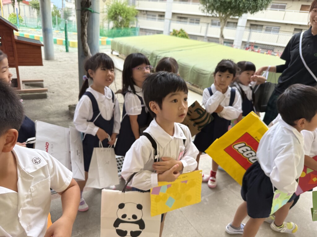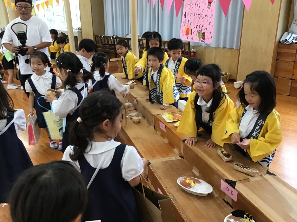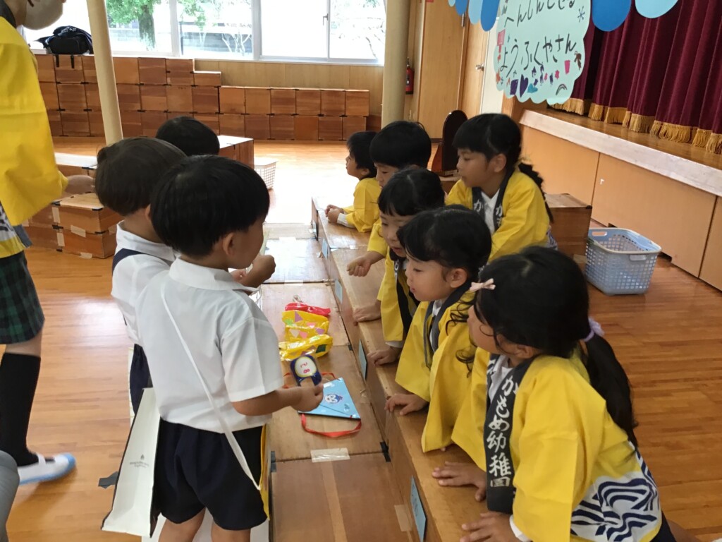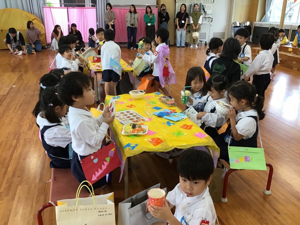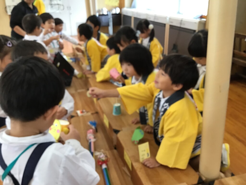 10月24日(金)に、子どもたちが楽しみにしていた年長組と年中組のお店屋さんごっこがありました。お店屋さんごっこに向けて、各クラスで品物作りを楽しんできました。 「わくわくいおんもーるかもめ オープン!」と年長組の元気な声に合わせて、お店屋さんごっこがスタート!年長組は、はっぴを着て大きな声で「いらっしゃいませ~」と声を掛けたり、「お釣りをどうぞ」と優しく声をかけたりする姿が見られました。年中組は、「どのお店から買おうかな?」と迷いながらも、欲しいものを買うことができて大満足♪楽しい1日になりました。