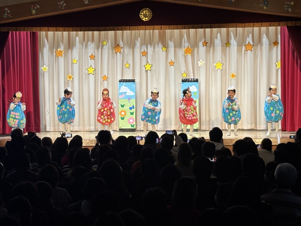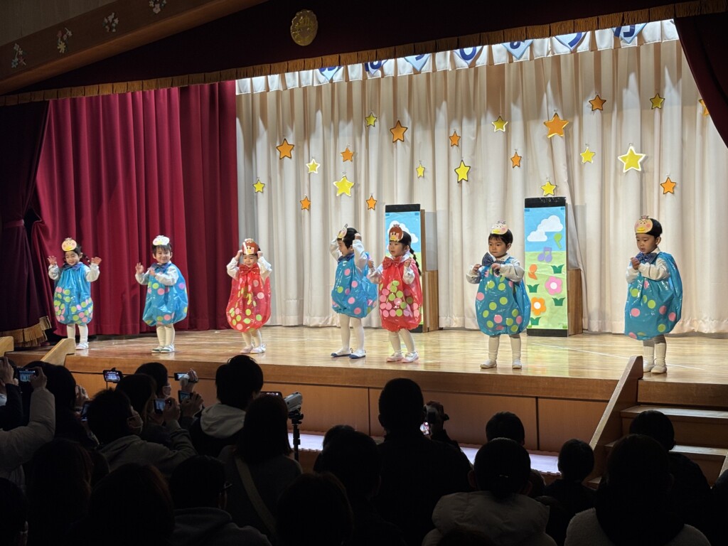 第63回かもめ幼稚園の発表会が2月7日(土)にありました。子供たちも朝から「ドキドキする~!」「早くみんなに見せたいな」など期待でいっぱいの様子でした。舞台の上の子供たちは,元気いっぱい踊ったり,歌ったり・・・一生懸命頑張りました。一人一人が練習の成果を十分に発揮できた発表会。たくさんの方々に見ていただき,達成感・満足感でいっぱいの子供たちでした。