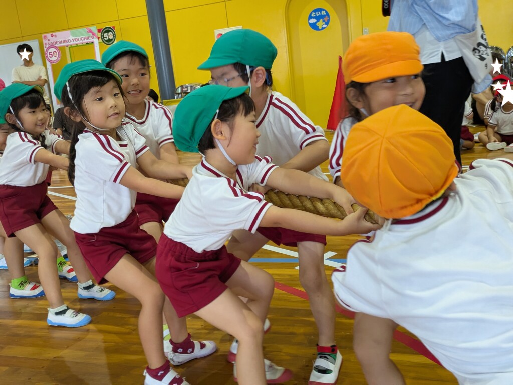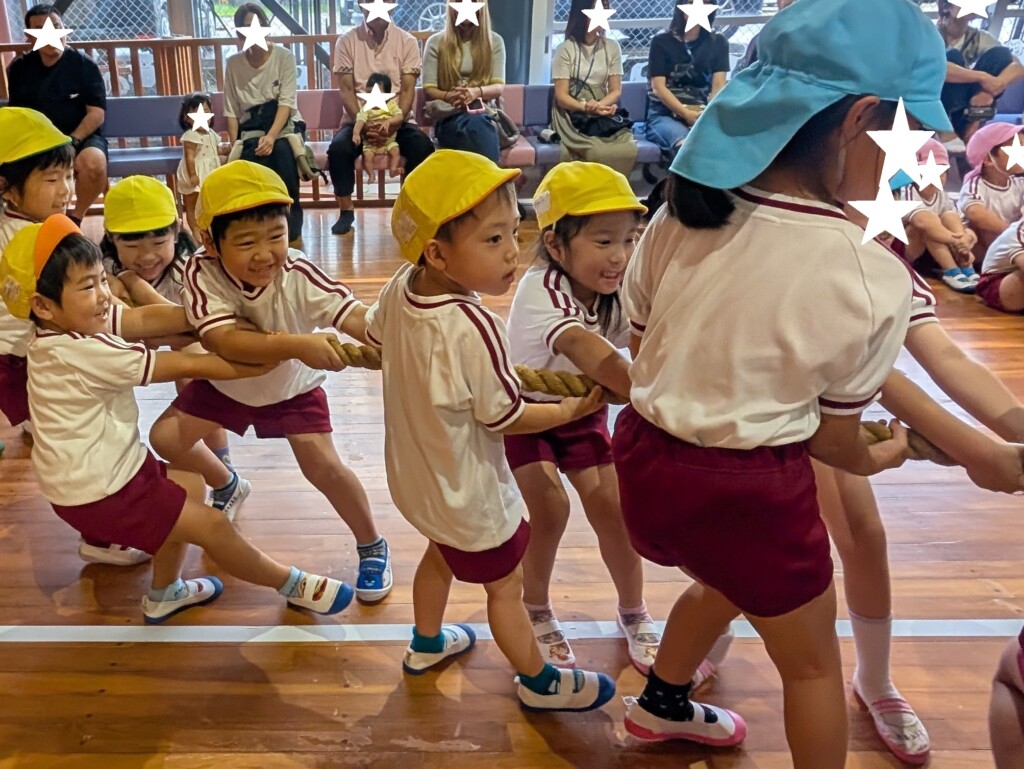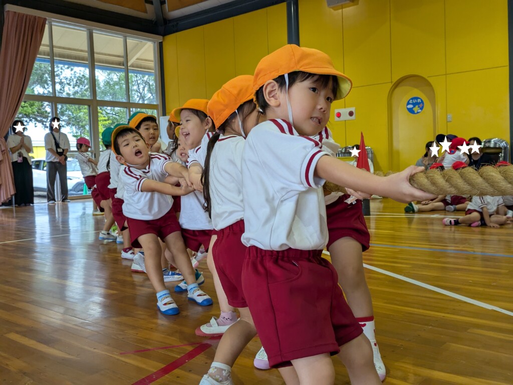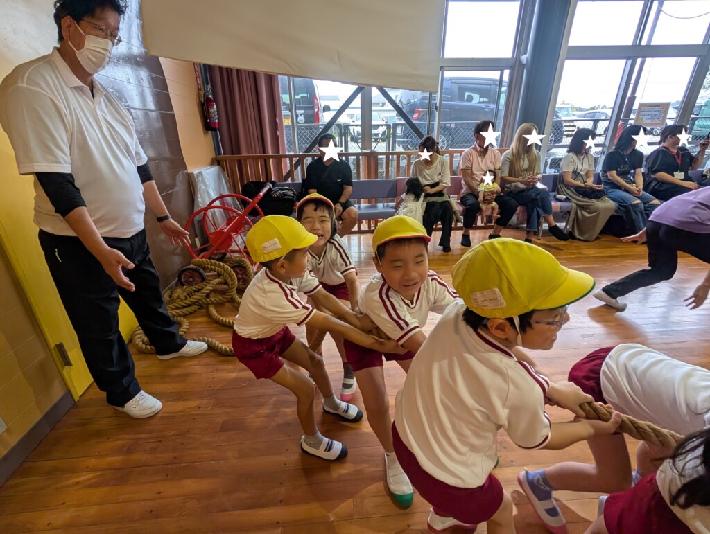 みんなで力を合わせて一生懸命縄を引っ張り、勝利のアナウンスが鳴ると「やったーー!」と大喜びのお友達でした✨