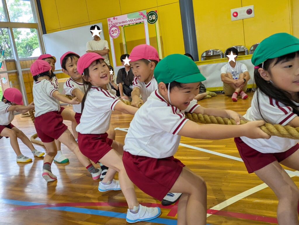 パワーをためて応援をした後は、笛の合図で一斉に縄を引っ張り合い、どっちが勝つか分からない見どころいっぱいの戦いを見せてくれました!