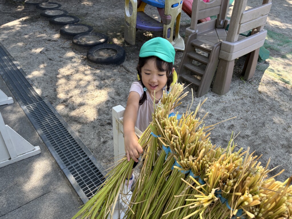 年少さんは初めての体験でしたが、年長さんの様子を見て刈り方を理解し、保育者と一緒に一生懸命刈ることができていました!