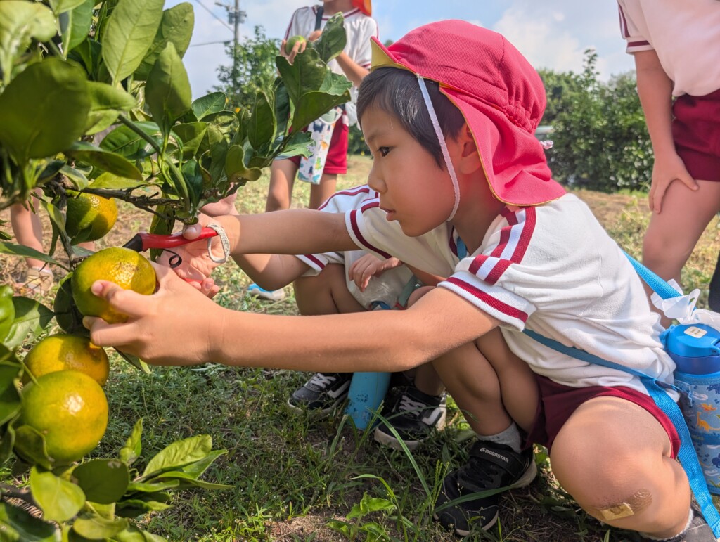 「みかんは冬にできるんだよね!」「大きなみかんあるかな?」とわくわくした表情で、楽しみにしていた年長さん。