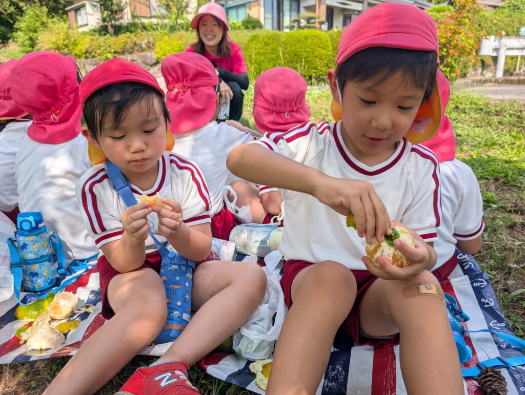 上手に皮を剥いて、パクリ!!「美味しい!」「ちょっと酸っぱいな」とお話しながら美味しく食べていましたよ♡