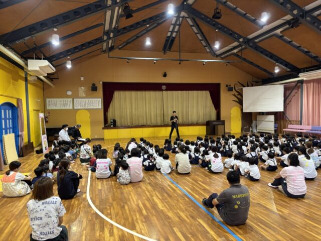 今日は、幼稚園さんと合同で不審者の避難訓練がありました。