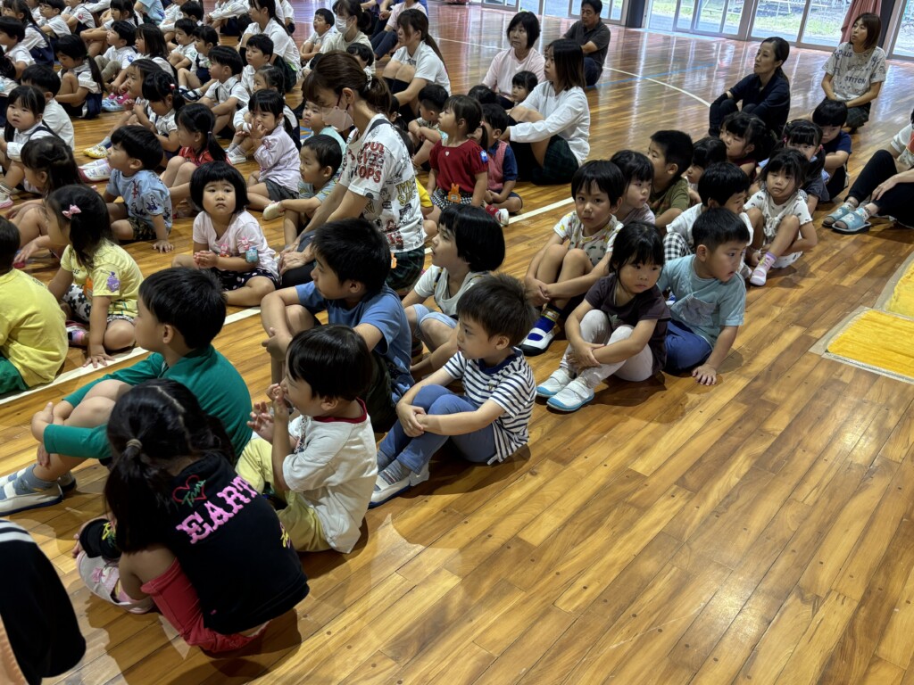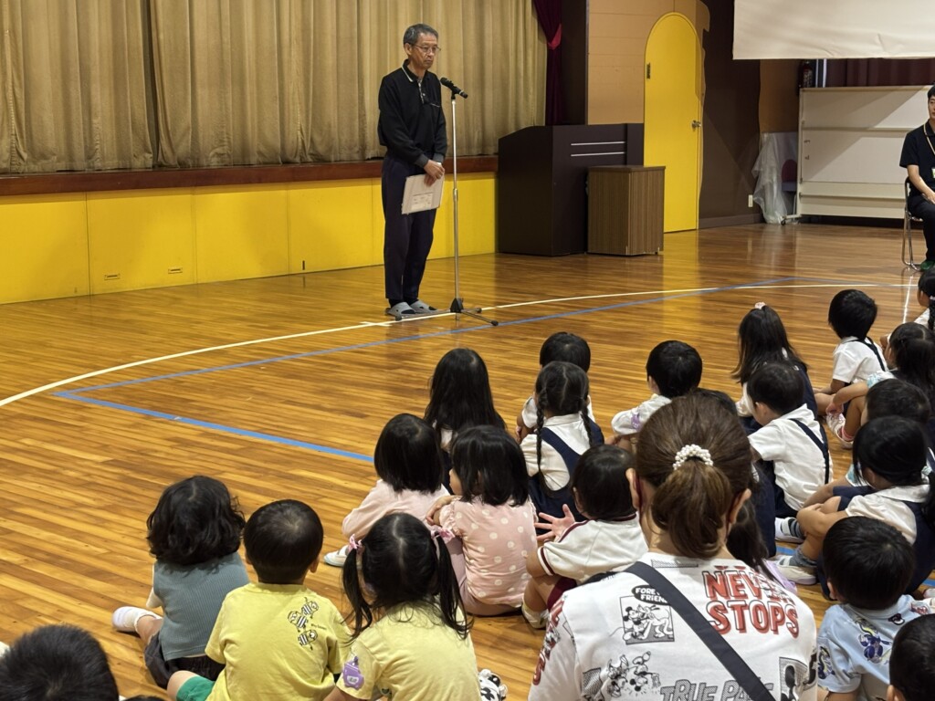 その後、ぱんだ組さんはリズム室に移動し、不審者が園に来た時にはどうしたらいいのかや、約束事についてのお話を聞きました。