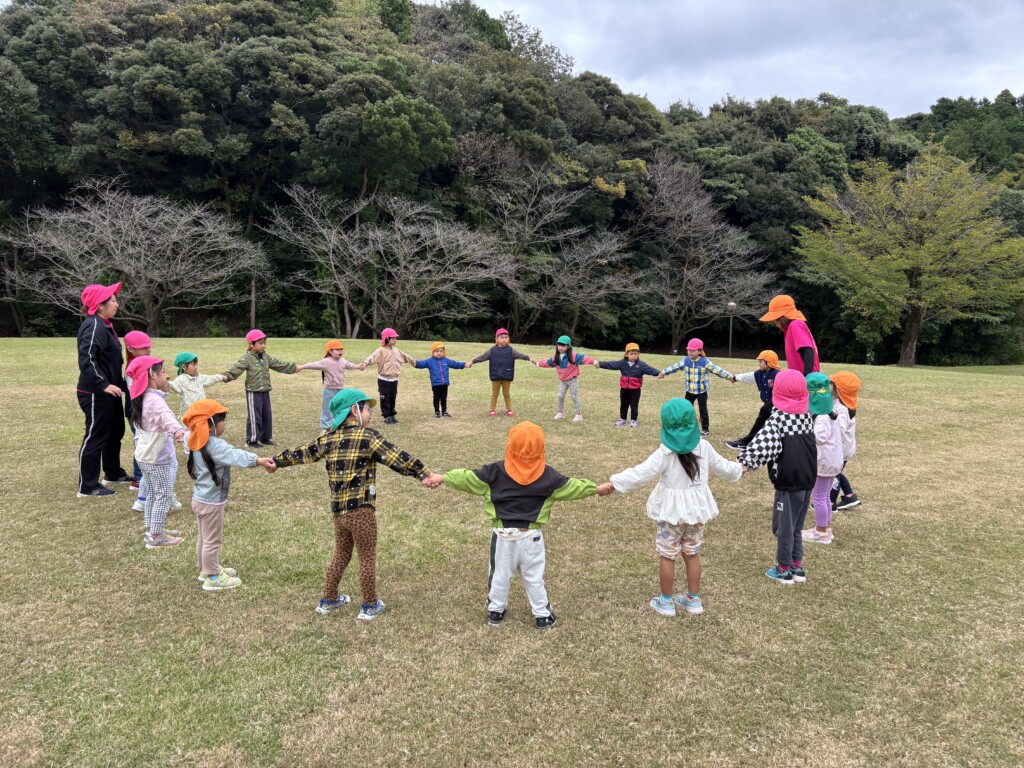 到着してから、みんなで鬼ごっこをして、体も温まった様子のぱんだ組さん😆