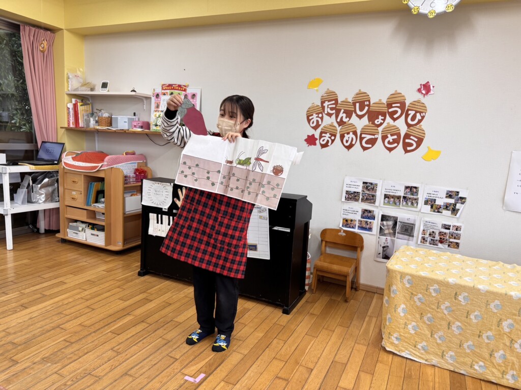 芋ほりのお話では、りす組さん・ぱんだ組さんのお友達もお手伝いしてお芋を収穫したり、