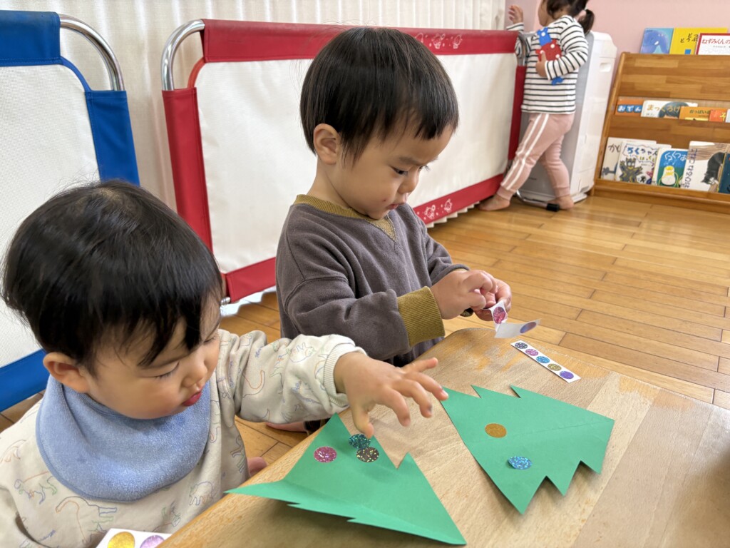 キラキラシールに目を輝かせながら、上手にシールをツリーに貼ることができていましたよ☆
