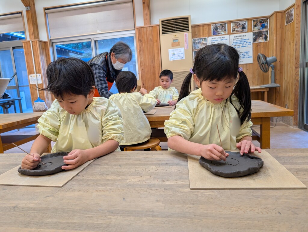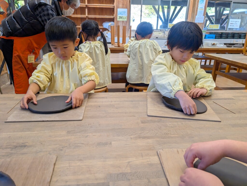 1月7日に年長さんは、卒園記念品としてお皿を作りにかごしま文化工芸村に出かけました。