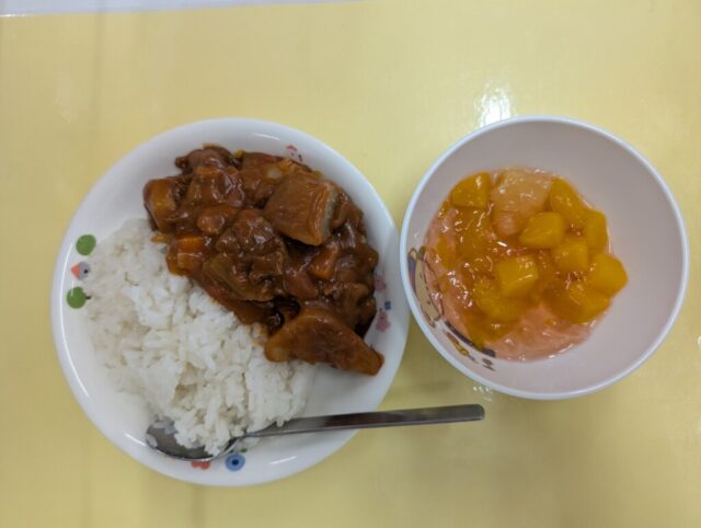 今日の献立は、ハヤシライス、フルーツポンチでした。