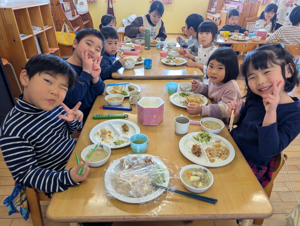「おいしい!」「これ切ったにんじんだよ!」と楽しくおしゃべりをしながら、モリモリ食べていましたよ😆