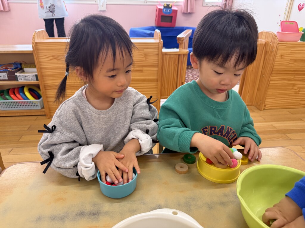 今回はふわふわボールやプラステンの遊具を使って、オリジナルのケーキ作りをしました!