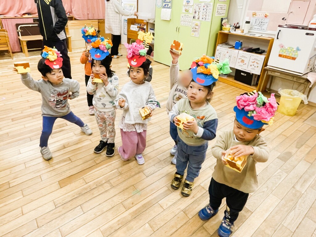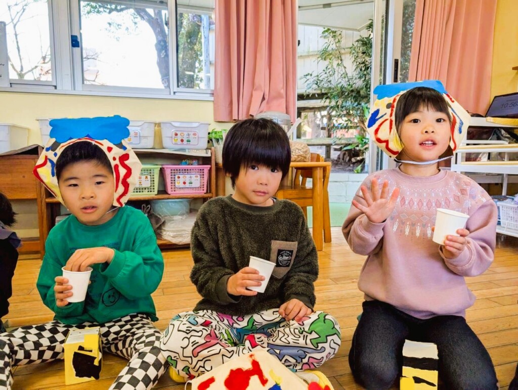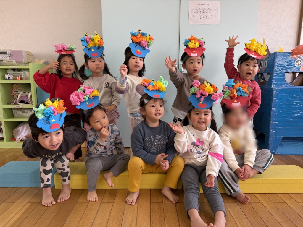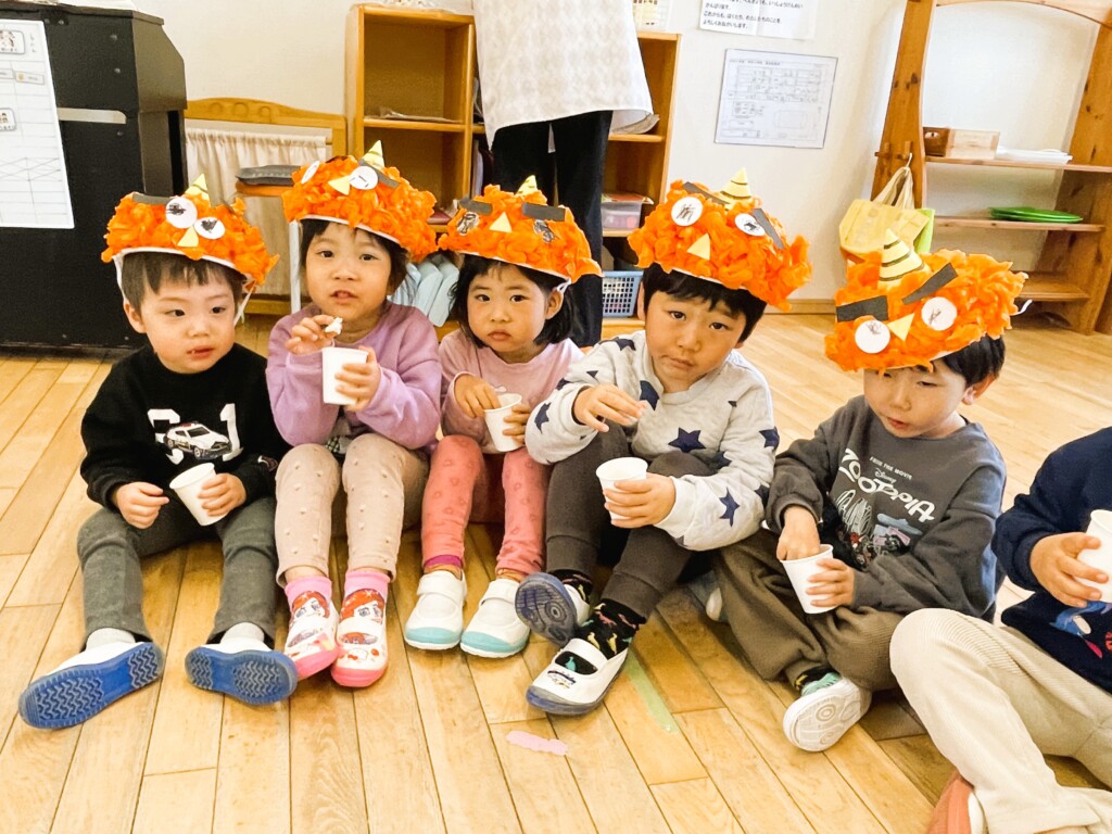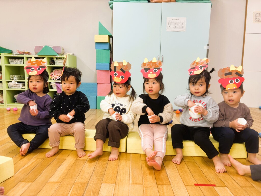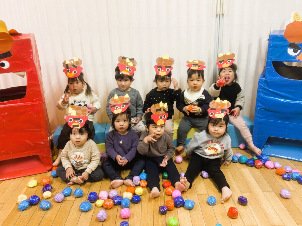 ぱんだ組の子どもたちは、数日前からカレンダーを見て、「どの日が鬼が来る日?」「どこから鬼がくるかな?」などと話しをする姿が見られていました。
