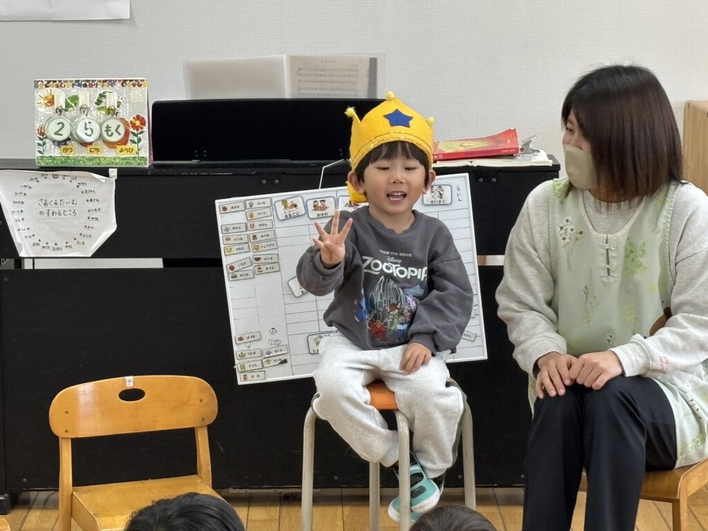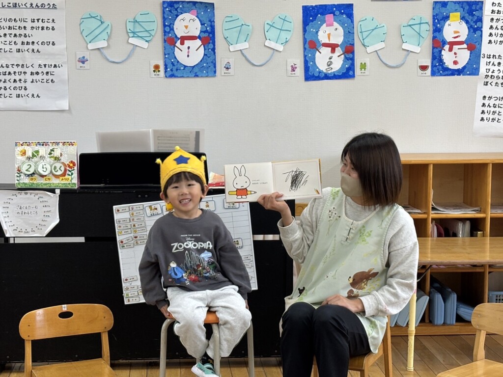 今日は、4日に誕生日を迎えたHくんのお祝いをしました!誕生日を楽しみに、毎日カウントダウンをしていたHくん✨みんなでお誕生日の絵本を見ながら好きな物クイズをすると「ピンポーン!」と答えることができたお友達に大きな声で言っていましたよ😆💗