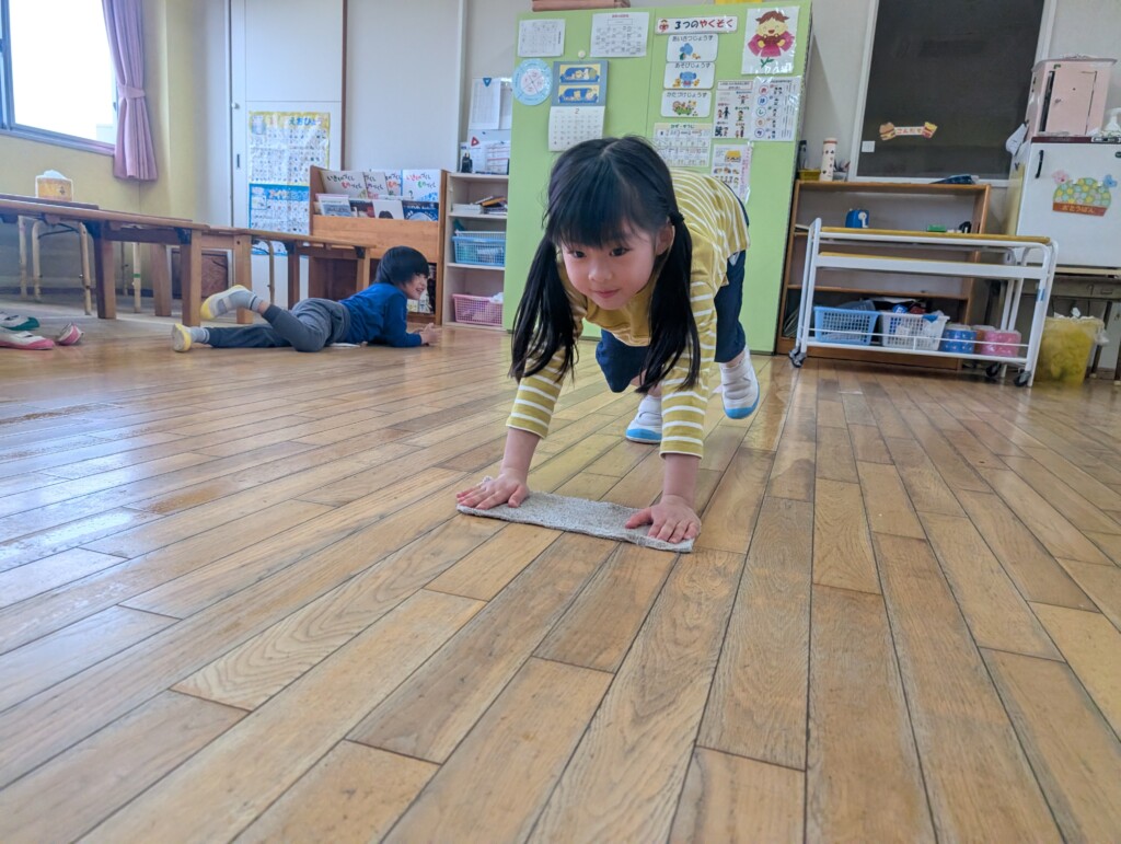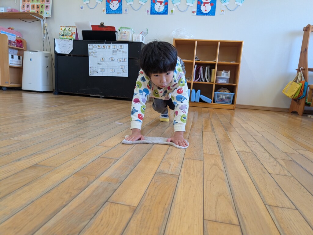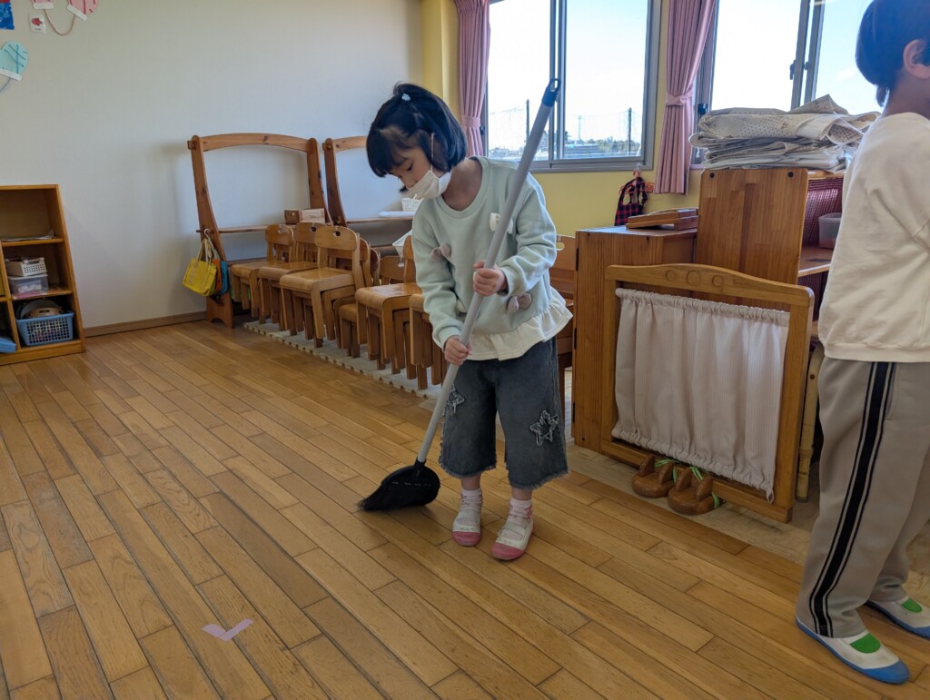 1月後半から、年長さんはお昼の時間にお掃除当番を始めました!