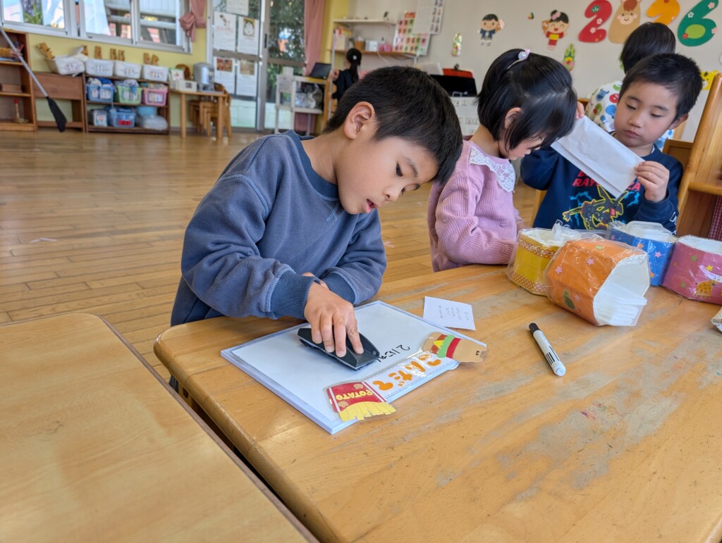 給食の献立書きでは、見本を見ながら丁寧に書き、その日の帰りのサークルタイムで大きな声で紹介もしてくれています♪