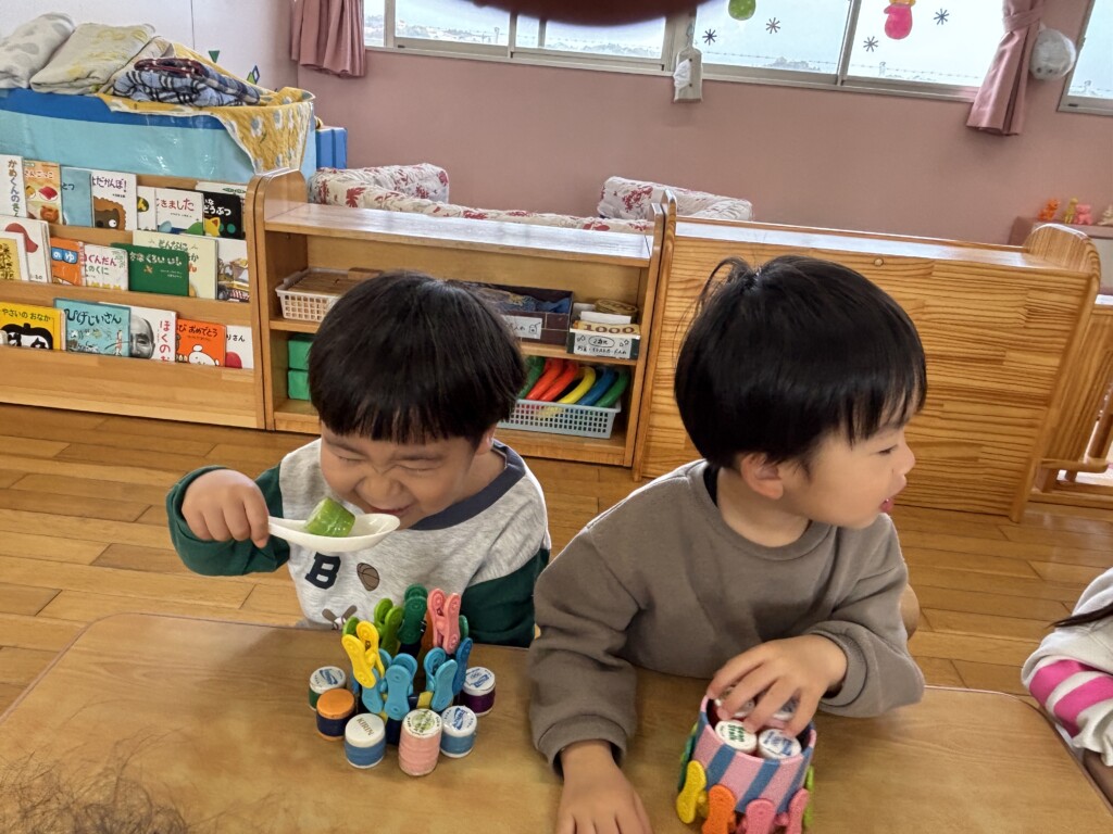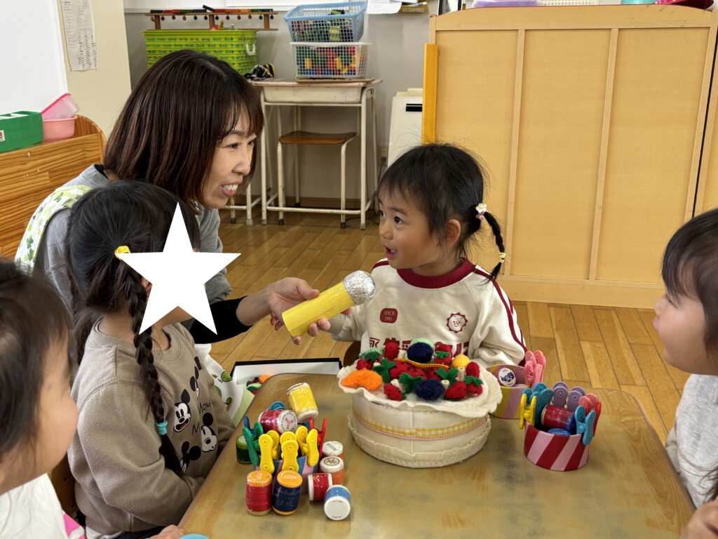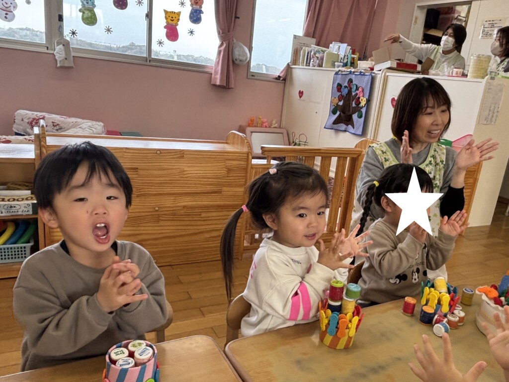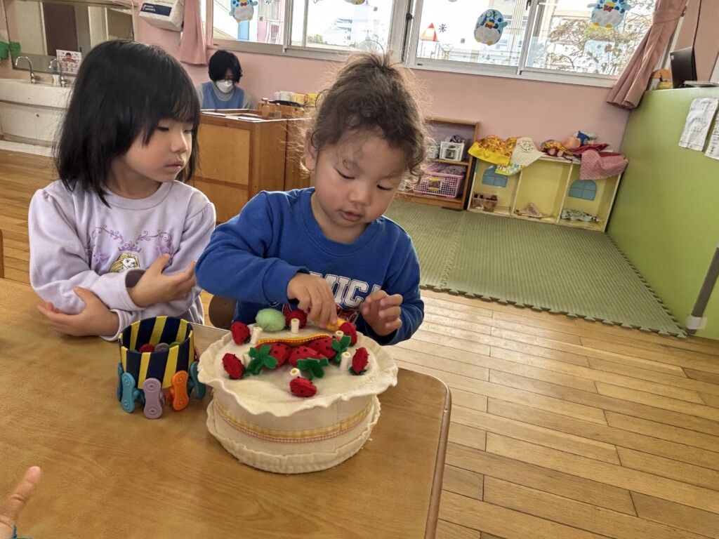 みんなで作ったケーキやフェルトのケーキを食べ、楽しいお誕生日会になりました♪