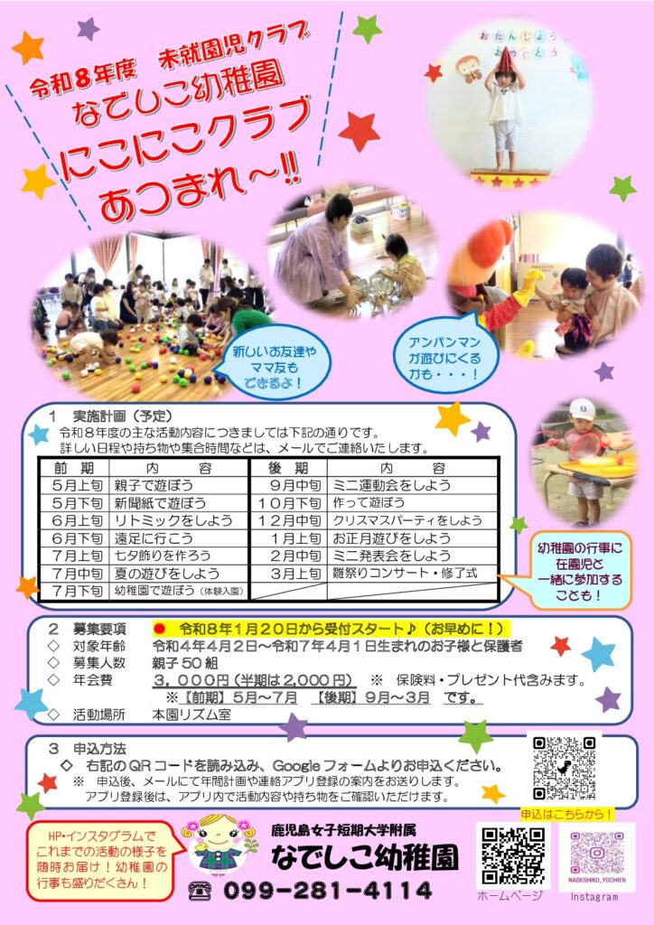 令和8年度未就園児クラブ(にこにこクラブ)の募集がスタートしました!