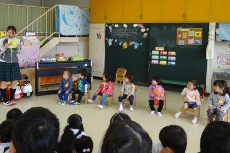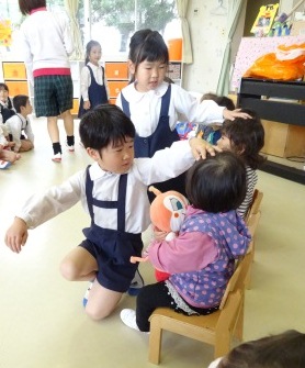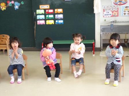 年少少組にも年長組さんがお迎えの会に来てくれました!写真にて子どもたちの様子をお伝えしたいと思います!