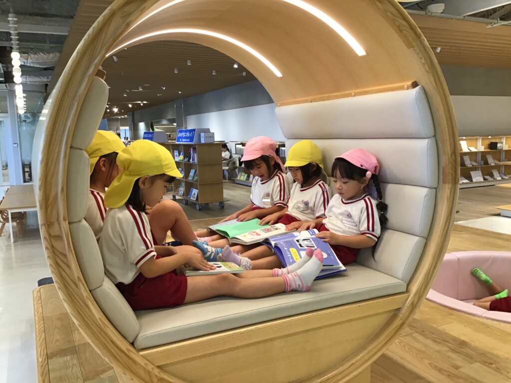 天文館で降りると、「行ったことある!」と大興奮な様子の中組さん。エレベーターを使って図書館に行くと、「絵本がたくさんある!」と喜んでいました。