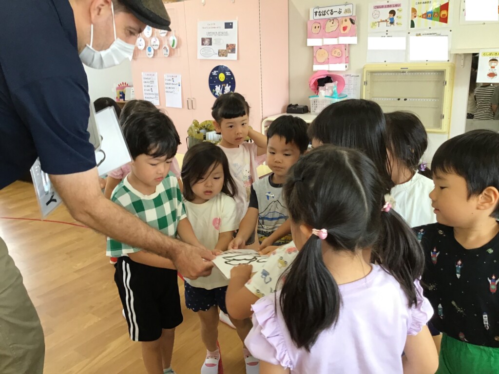今日、“英語で遊ぼう”の7回目がありました!今回は、ジェシー先生が来てくださいました!