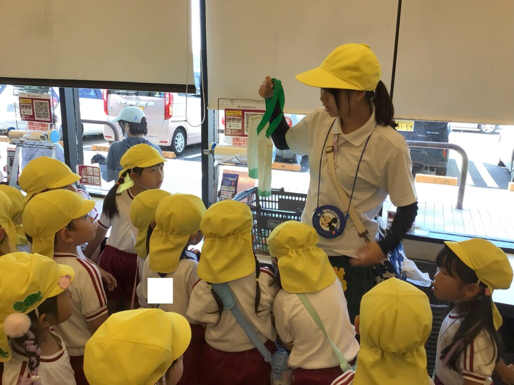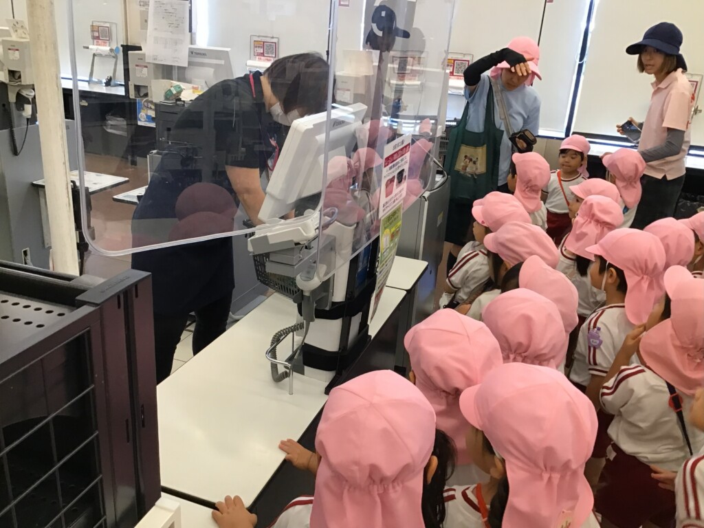 店員さんに品物を渡したり、お金を払ったり、買ったものをカバンに入れたりなど買い物の仕方も1つ1つ勉強しました。園に戻ってきてから購入したゼリーも食べ、満足そうな子どもたちでした♪