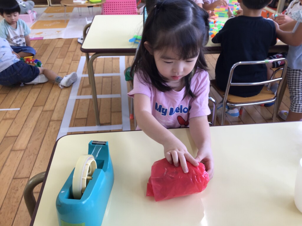 セロハンテープを使ってりんご作り♪