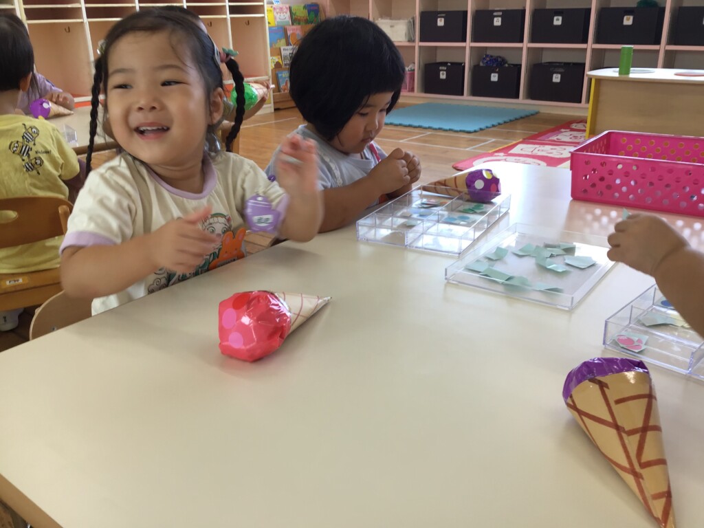 また、作った品物を使って保育室でもままごとやお店屋さんごっこを楽しんでいます♡ どの商品も素敵ですね♪