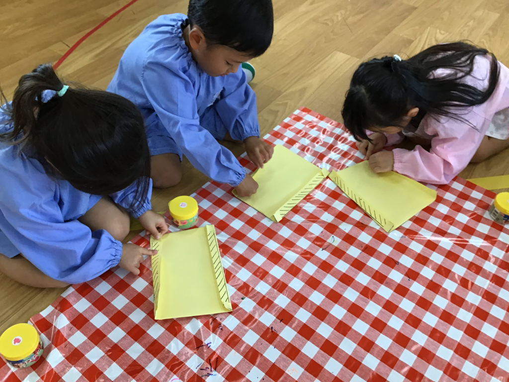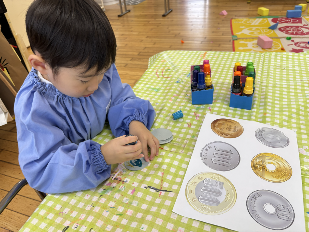 お店屋さんごっこで使う、財布やお金を各クラス作っています!