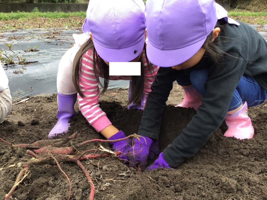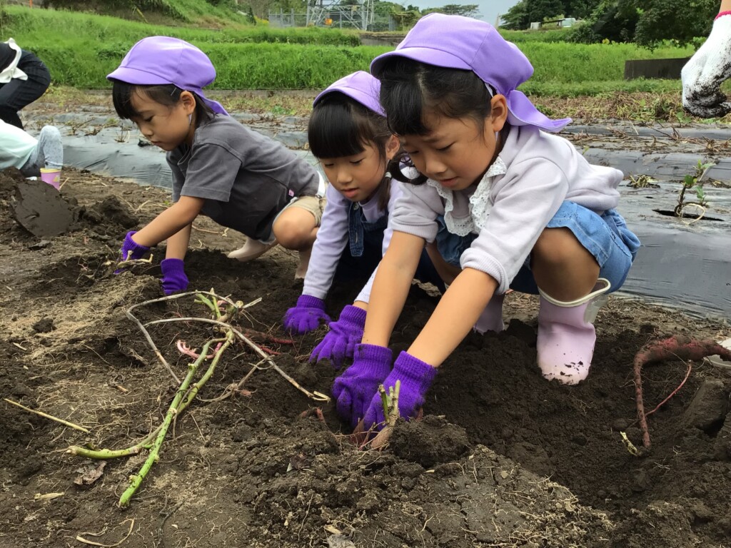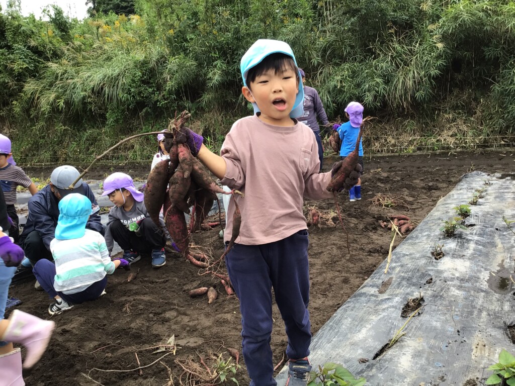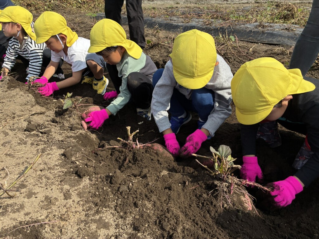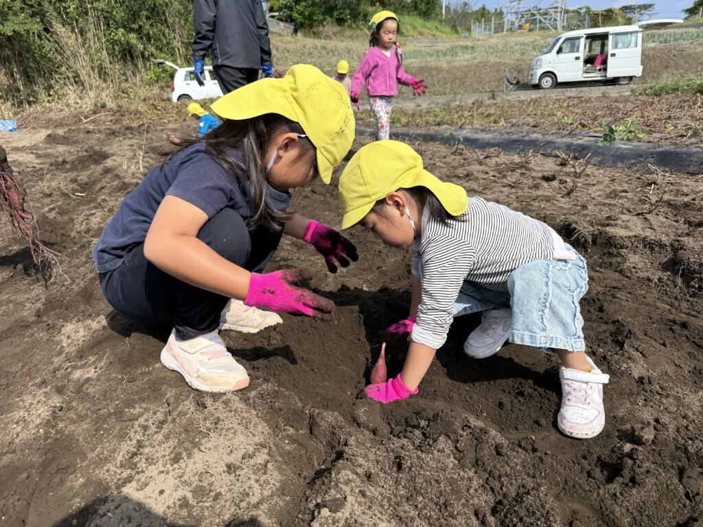 10月24日、27日に年長・年中がそれぞれ芋ほり遠足に行きました!事前に、各クラスで幼稚園の砂場でお芋探しゲームなどをして、どの子も当日たくさんお芋が掘るためにパワーをためてきました☆彡