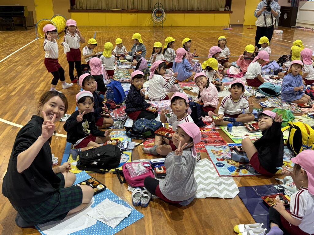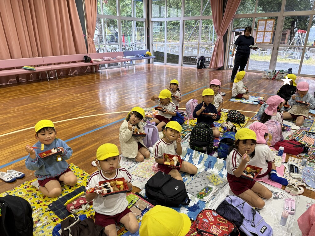 コスモスを散策した後、幼稚園に帰って、昼食を食べました。お弁当を見て、「いつもと違う!」と、すぐにいつもと違うことに気付いてとても喜んでいました!