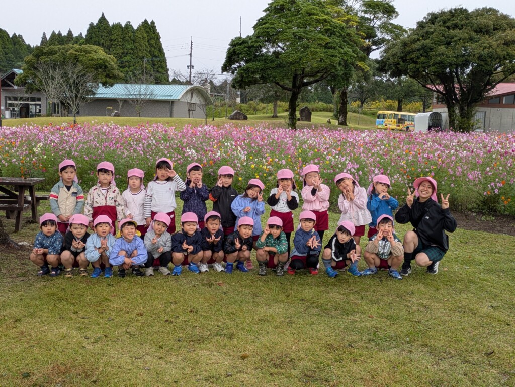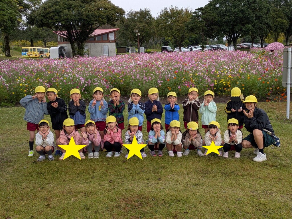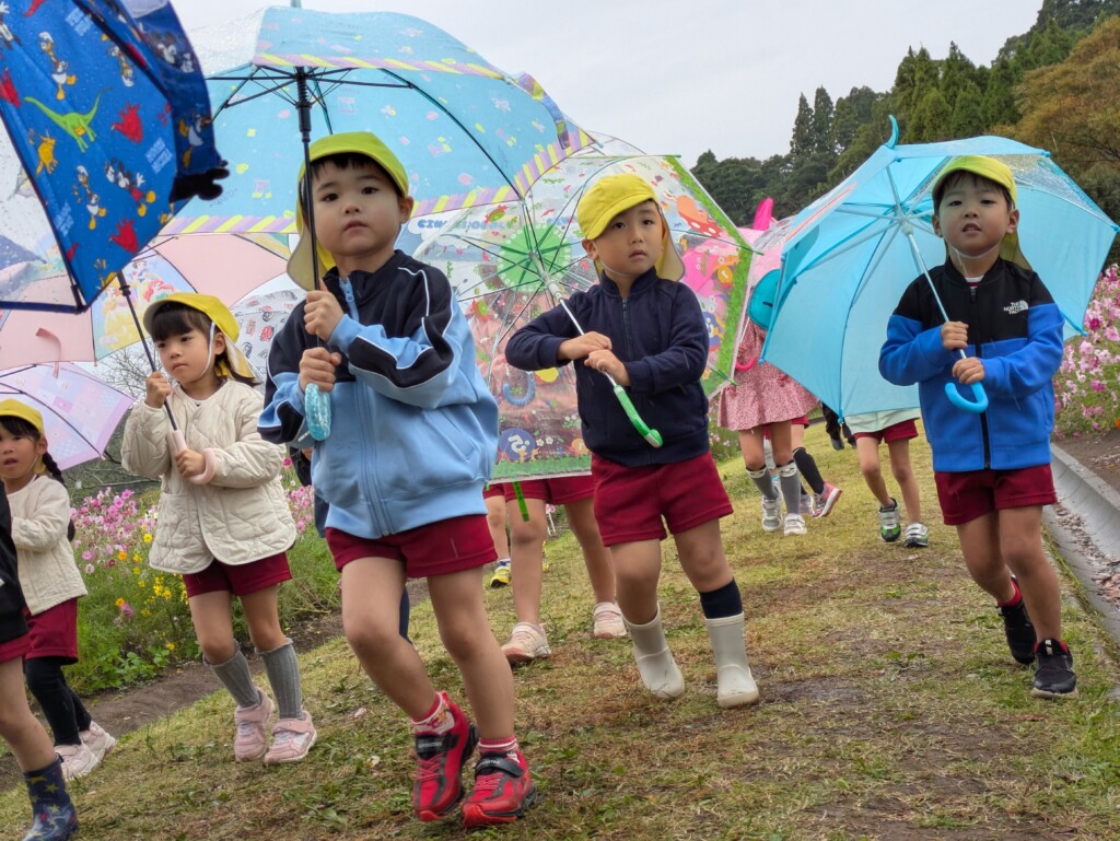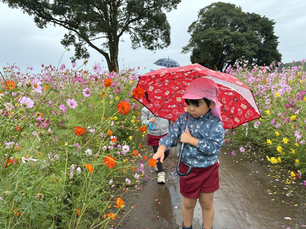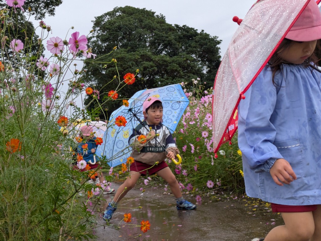 小雨が降っていましたが、自分たちのお気に入りの傘をさして、コスモス畑を散策しました🌼