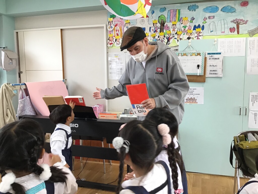 ジェシー先生と色探しをしたり、ABCの歌を歌ったりしました!また、「Go!」「Stop!」の合図に合わせていたりジャンプをしたり歩いたりなどして遊びました(^^)