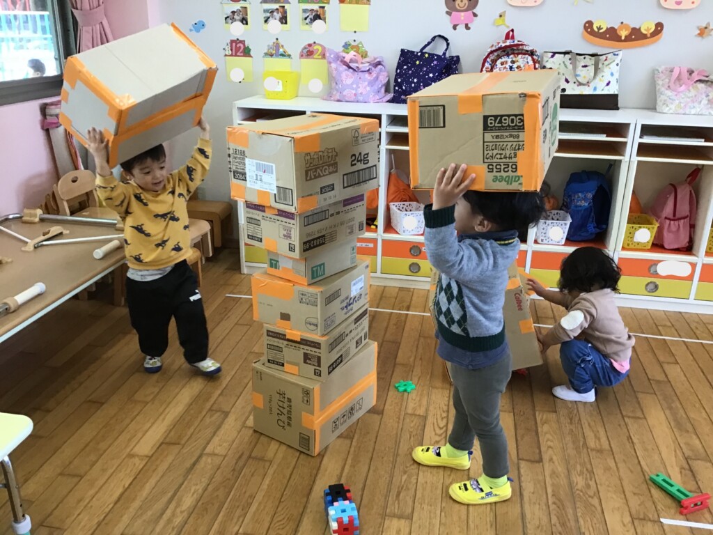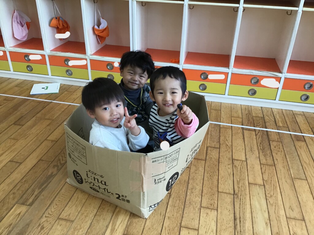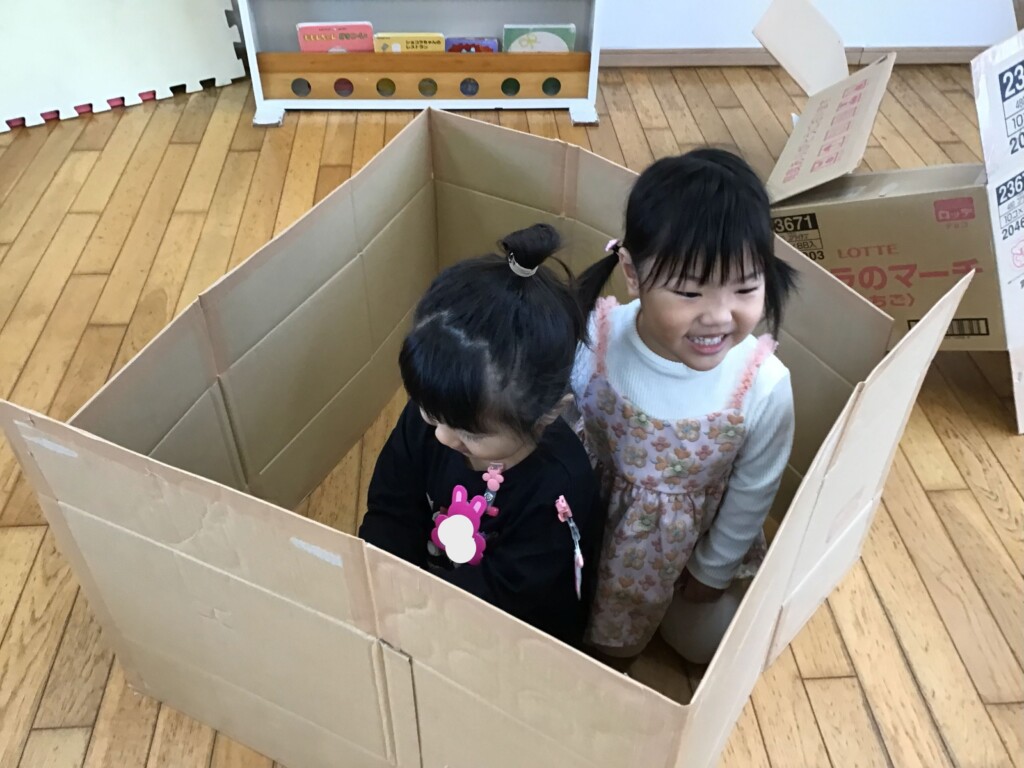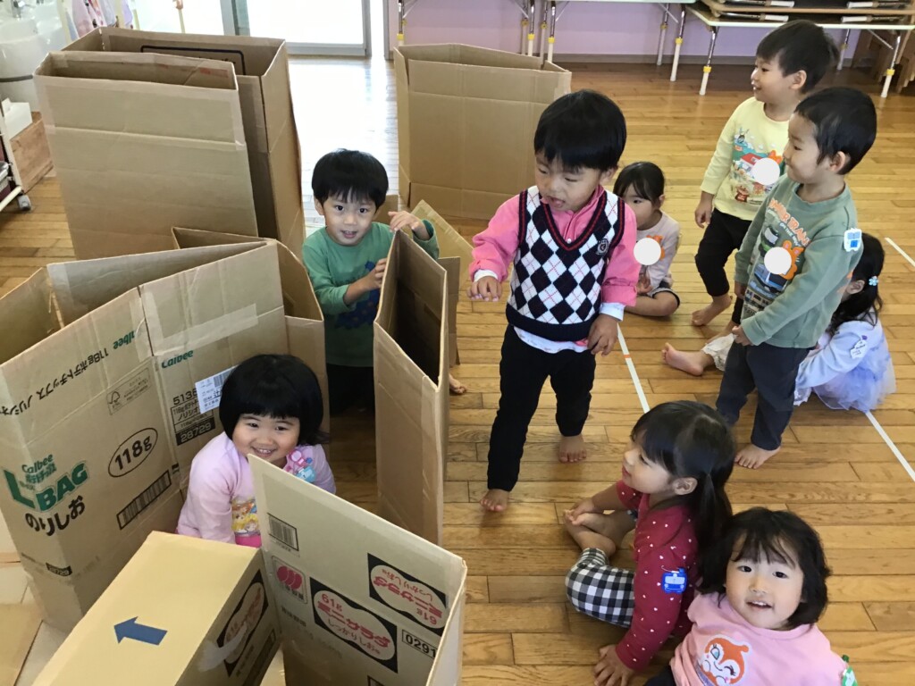 11月に入ってから、段ボール遊びを楽しんでいる年少少組さん!