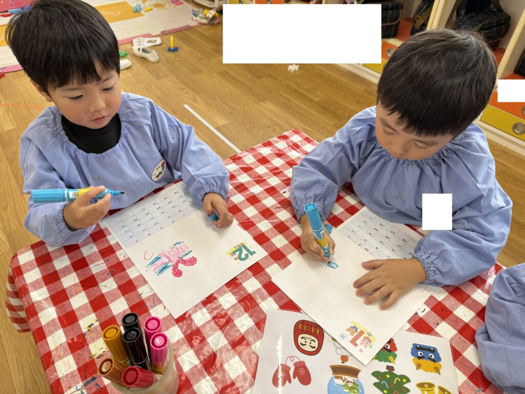 年中組さんは、季節のイラストをマジックペンで描いたカレンダーを、避難訓練や交通安全教室でお世話になっている明和分遣隊さんや明和交番さんに渡しました☆