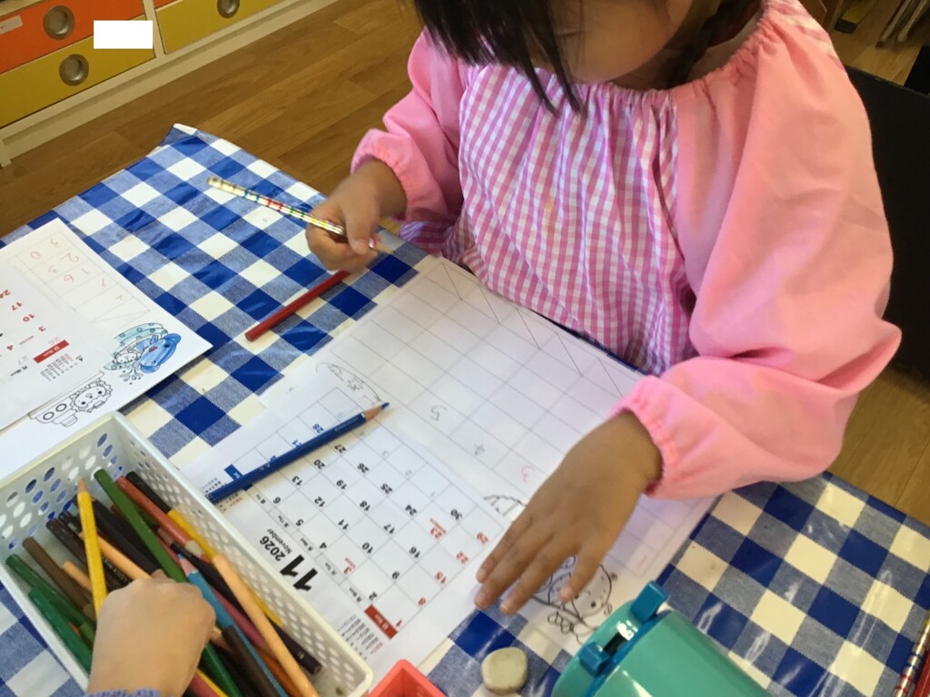 年長組さんは、日付や感謝の気持ちを自分たちで書いたカレンダーを、交流会や職場体験でお世話になった明和小学校・明和中学校の先生方に渡しました♪