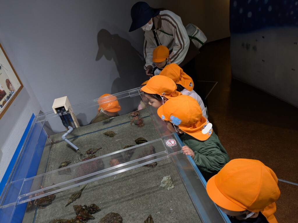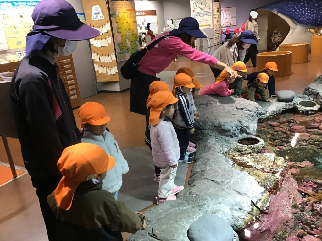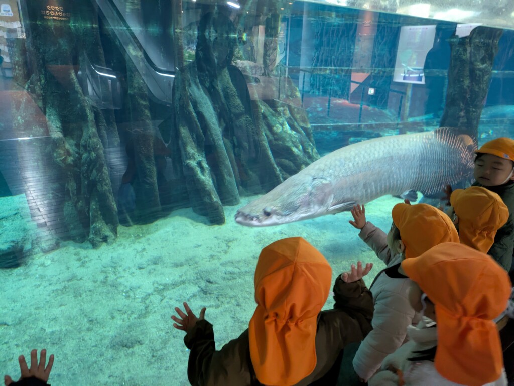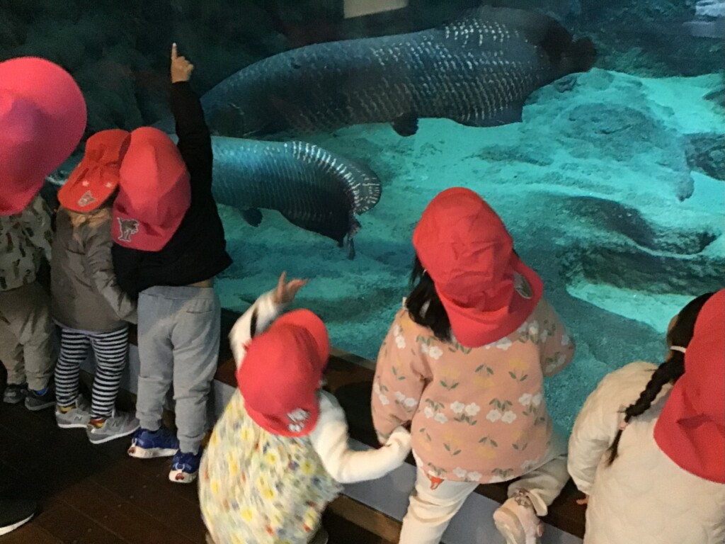 12月9日に年少少組が初めての園外保育に行きました!初めての園外保育は「水族館」に行き、たくさんの海の生き物を見て楽しみました★