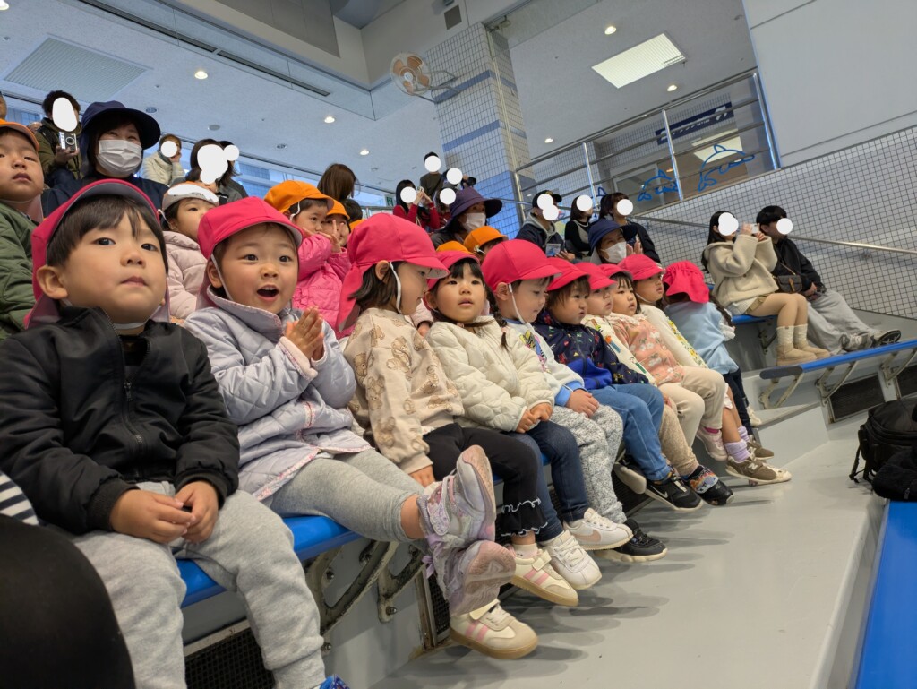 子どもたちが特に大喜びだったのは、「いるかの時間」でした。イルカが大きなジャンプをしたり、優雅に泳いだりする姿を目をキラキラさせながら見ていました!また、イルカの一つ一つの動きに拍手をしたり、「イルカかわいいね!」とお友達同士で話す姿も見られました!