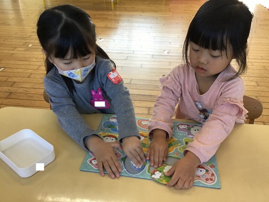 遊具を探したり、森を探したり、幼稚園の中を色々探してみました。みんなで探していると、ポストの中にあったり、園長先生が持っていました!中を開けてみると、鍵は入っていませんでした。その時に、「リズム室で待っているので来てください」と、アナウンスが聞こえて、大急ぎでリズム室に向かいました。