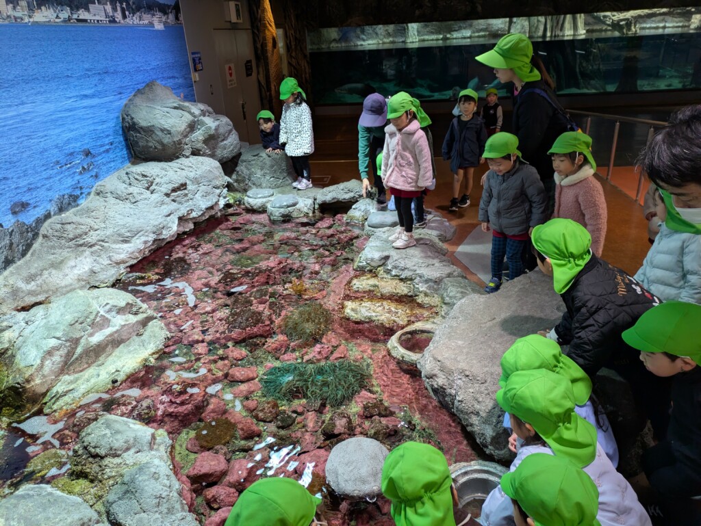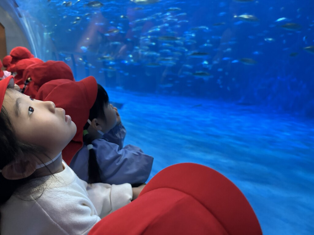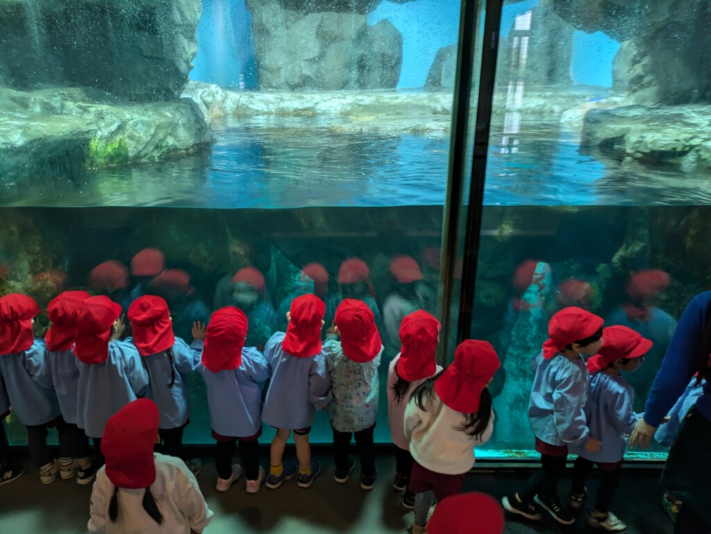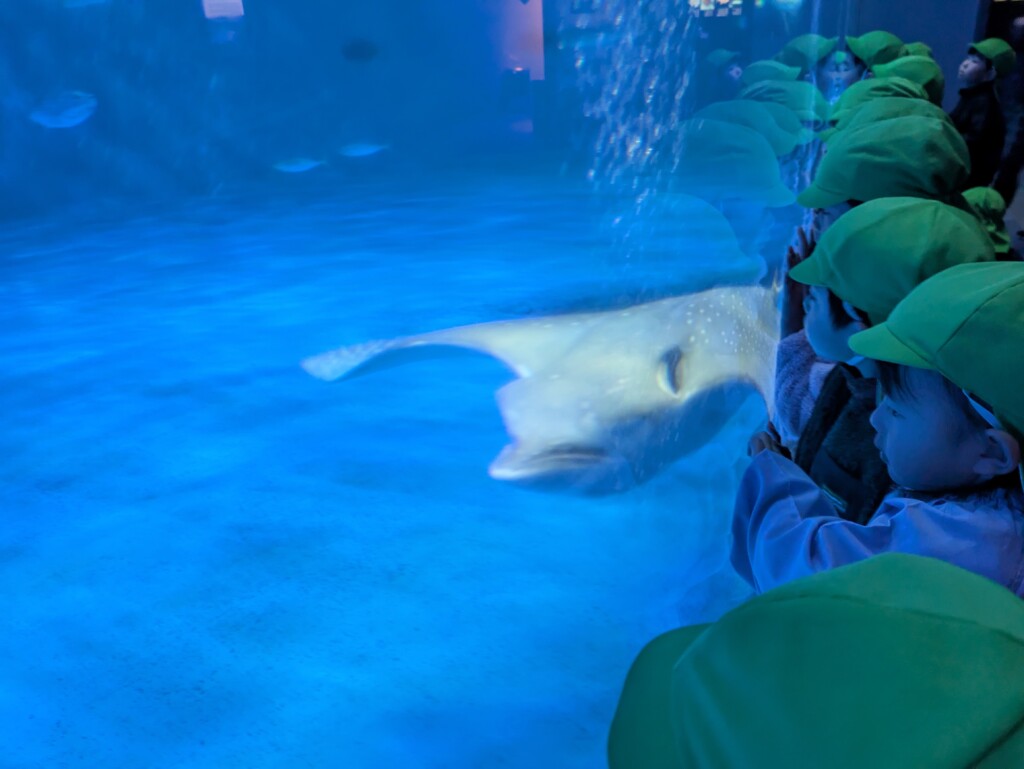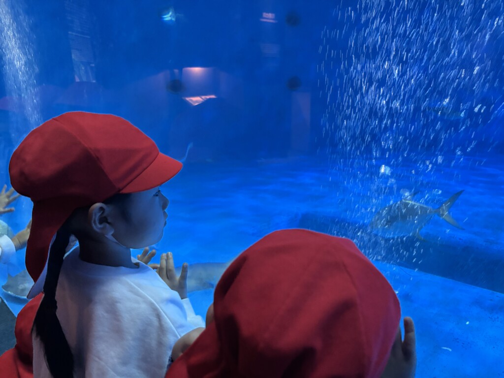 他にも、アザラシやジンベイザメなどいろいろなお魚を見ることができました!「僕の手より大きいよ!」「図鑑で見たことあるお魚がいる!」と、お友達ともお話をして楽しく過ごした年少組さんでした☆彡
