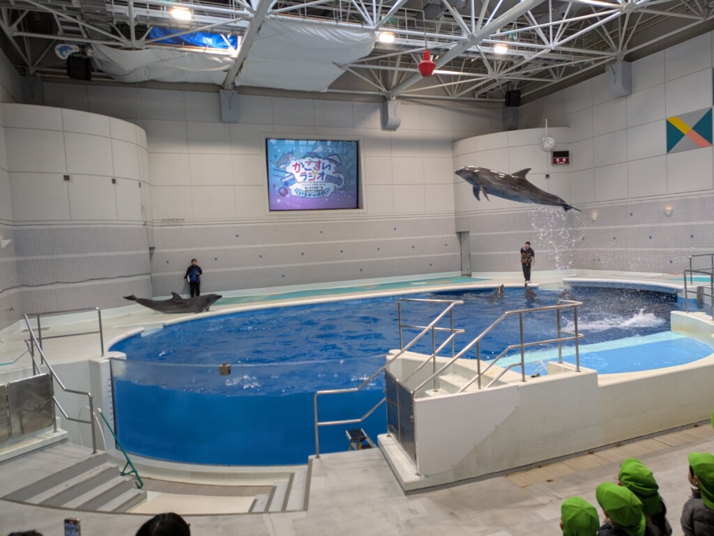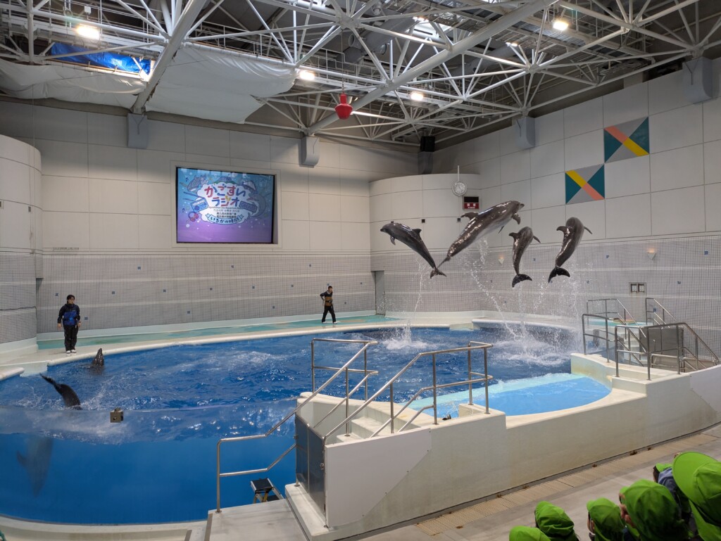 館内では、イルカショーを見て楽しみました♪大きくジャンプするイルカを見て子どもたちも大興奮!「すごーい!」「イルカさんかっこいいね★」と大喜びでした(^▽^)/