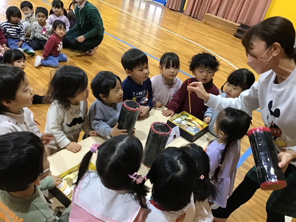 3学期が始まってから、1週間程度、リズム室・保育室・運動場でお正月遊びを楽しみました!
