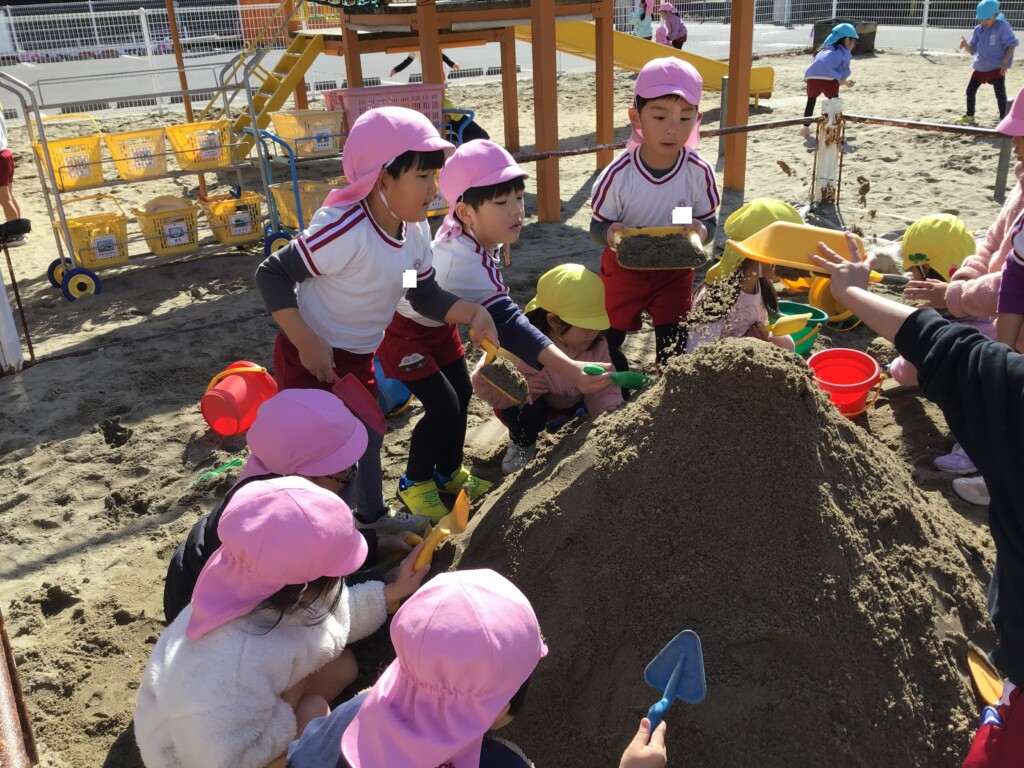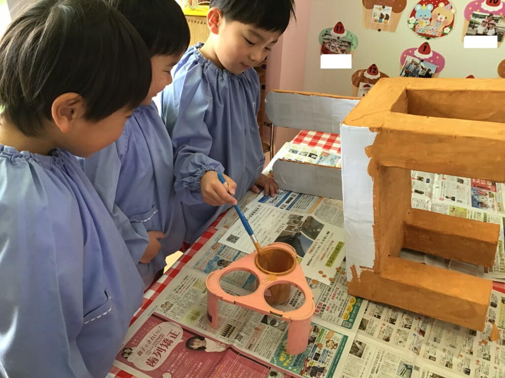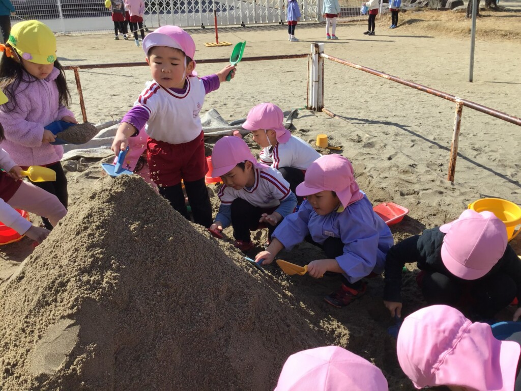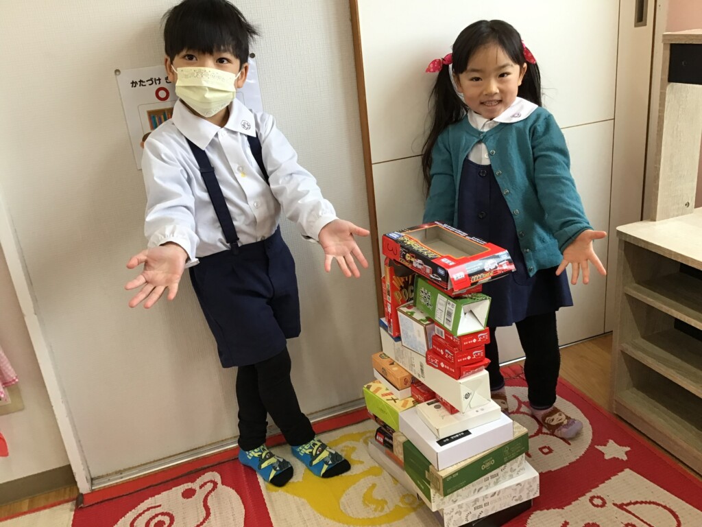3学期もお友達と仲良く遊んでいるさくら組さん。寒さに負けず、外でも元気いっぱい遊んでいます🌟また、発表会に向けてもみんなで大道具を作って準備をしてきました!
