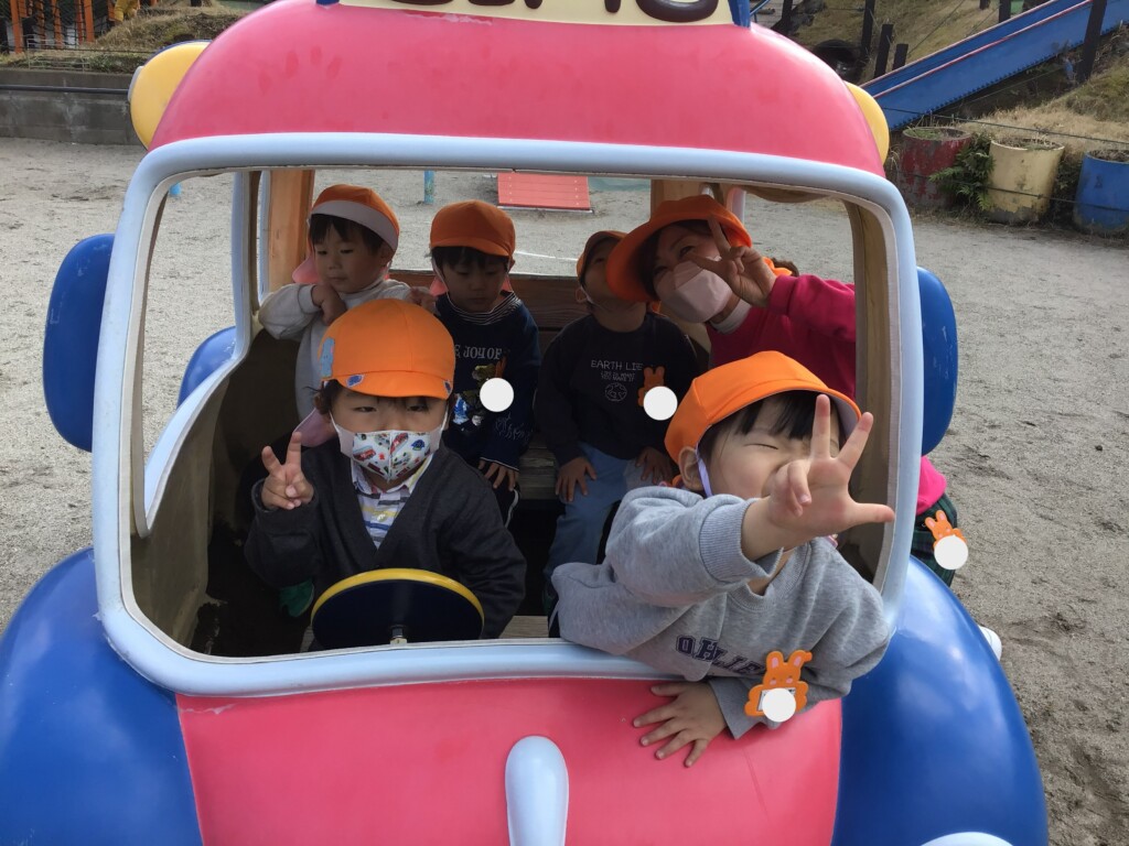 お天気がとても良く、戸外で思いっきり遊ばせてもらいました!なんと、すみれ幼稚園の年少少組さんも出てきてくれて一緒に遊びましたよ!