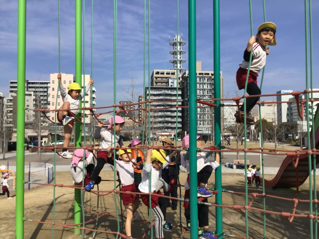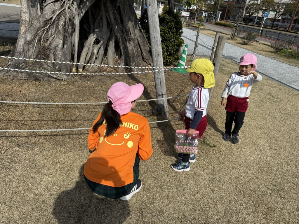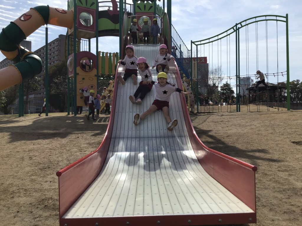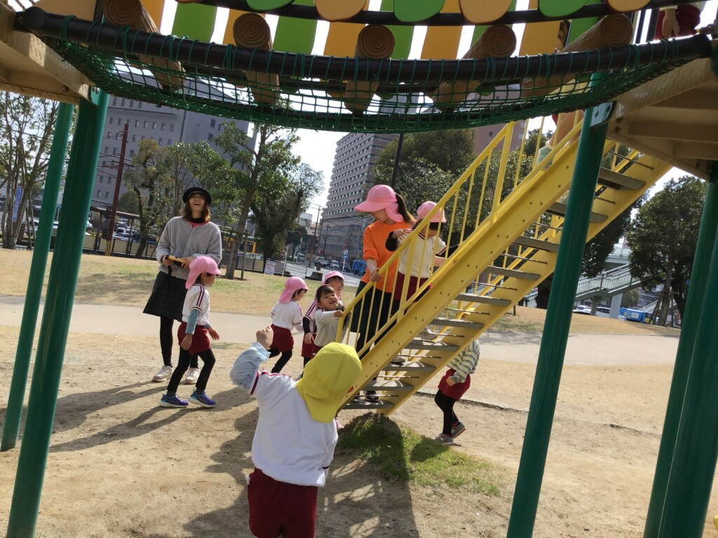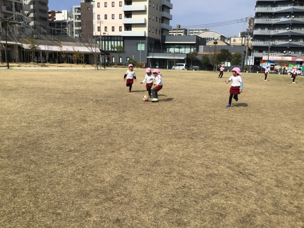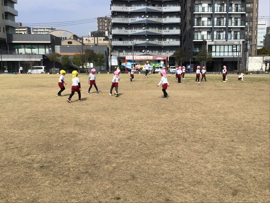 年中組さんが16日に、最後の園外保育に出かけてきました。加治屋町の杜公園に行って、遊具で遊んだり、芝生でサッカーをしたりして楽しみました🌟